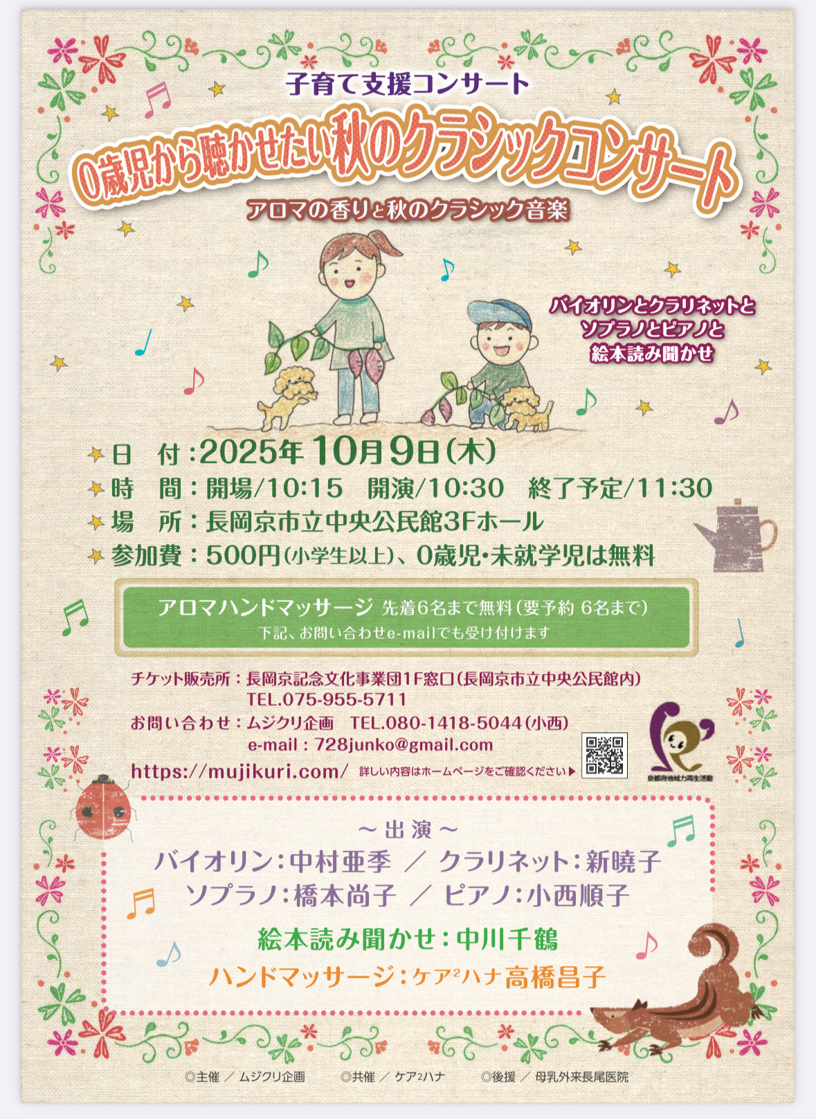 0歳児から聴かせたい秋のクラシックコンサート  2025年10月9日(木)