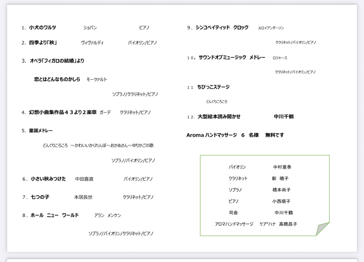 しばらく、コンサートのお知らせをしていなくてごめんなさい。